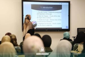 نظّمت شعبة شؤون المرأة، بالتعاون مع كلية الهندسة وتكنولوجيا المعلومات ومركز التعليم المستمر، في جامعة الزهراء عليها السلام للبنات، ورشة علميةً، بعنوان: ‘تقنيات كتابة التقارير والمراجع” (Reports Writing & Referencing Techniques)؛ برعاية السيدة رئيسة الجامعة الأستاذة الدكتورة زينب السلطاني، وبإشراف مسؤولة شعبة شؤون المرأة م.م منال عبد الأمير عليان وذلك يوم السبت 1/2/2025 على رحاب احدى القاعات الدراسية. قدّمت الورشة م.م. عليان، حيث ناقشت كيفية كتابة بحوث التخرج، موضحةً التسلسل الصحيح لطريقة الكتابة، وآليات استخراج المصادر وتوثيقها وفقًا للمعايير العلمية الرصينة. استهلّت عليان الورشة بتعريف فن الكتابة وآلية إعداد الخطة البحثية ضمن الإطار العام، طارحة أفكارًا تساعد الطالبات على تطوير مهاراتهن البحثية، مشدّدةً على أهمية الاطلاع على البحوث السابقة لتعزيز التفكير النقدي، وتبسيط عملية البحث، ما يسهم في إيصال الفكرة بسلاسة للقارئ والباحث. وفي ختام الورشة، طرحت عليان مجموعةً من الأسئلة على الطالبات بهدف تمكينهن من التطبيق العملي، كما استقبلت استفساراتهن وأجابت عنها بما يُعزّز الفهم والإلمام بالموضوع.